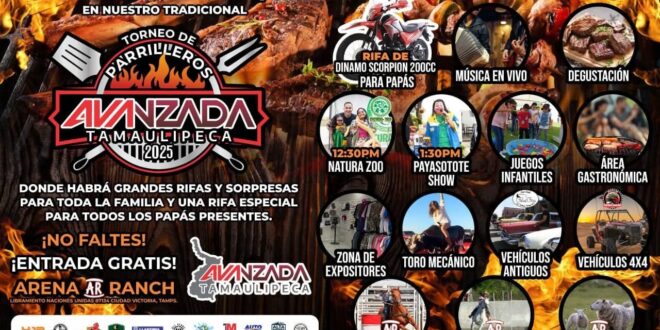 Ciudad Victoria, Tamaulipas – Este domingo 15 de junio, Avanzada Tamaulipeca organiza el esperado Torneo de Parrilleros 2025, una fiesta familiar que promete sabor, espectáculo y convivencia en la Arena Ranch, con entrada totalmente gratuita desde las 10:00 de la mañana.
