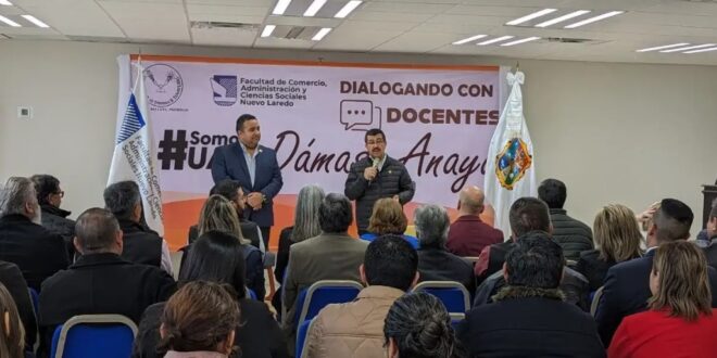 En su primera visita a las facultades de la zona norte del estado, como parte de la gira Diagnóstico 2024 que realiza en las dependencias académicas de la Universidad Autónoma de Tamaulipas (UAT), el MVZ Dámaso Anaya Alvarado estuvo en Nuevo Laredo para sostener encuentros con las comunidades universitarias de las Facultades de Comercio y Enfermería en esta ciudad fronteriza.
