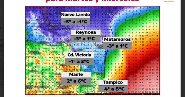 Se trata de un nuevo Frente Frío impulsado por aire de origen ártico que ingresaría a Tamaulipas el próximo lunes, el cual pudiera ocasionar un marcado descenso térmico durante inicios de la próxima semana, además de evento «Norte» fuerte ráfagas de viento mayores a los 60 km/h, probabilidad de lloviznas dispersas y formación de hielo en las zonas montañas del estado.